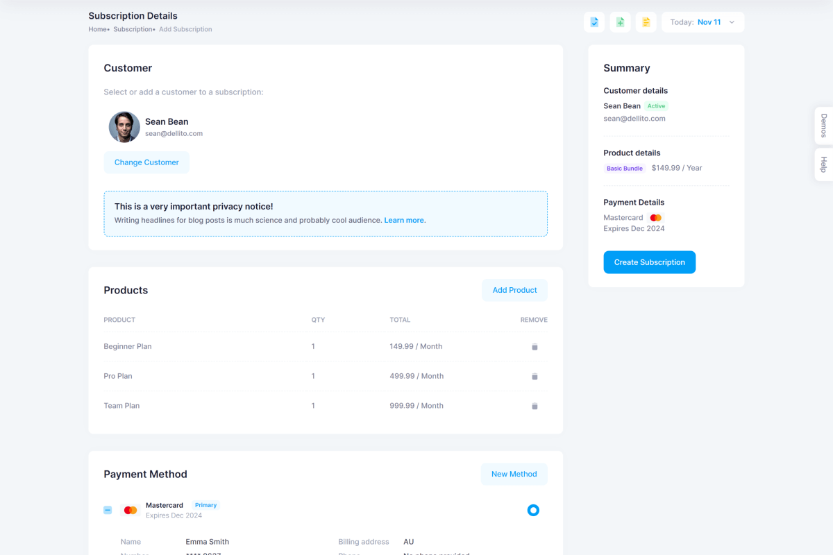 New order #67890is placed for Workshow Planning & Budget Estimation