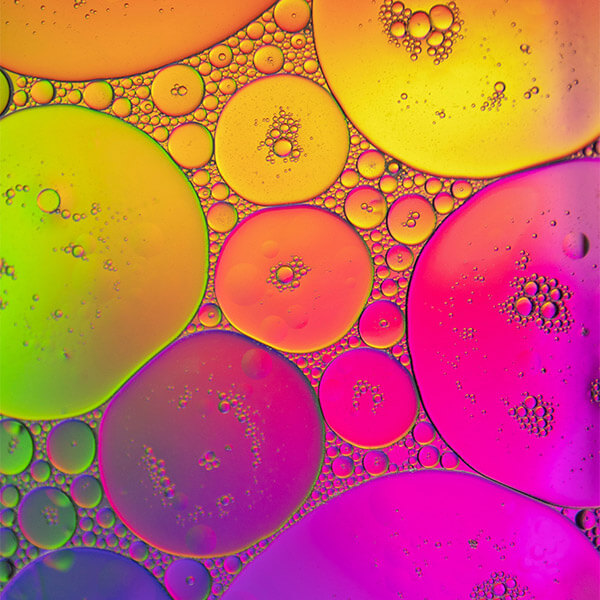 Flat cartoony illustrations with vivid unblended colors and asymmetrical beautiful purple hair lady